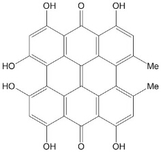 金丝桃素(hypericin,HY)是贯叶金丝桃中最具生物活性的物质,结构为萘骈二蒽酮类化合物,可发出明亮的橘红色荧光,是一种良好的光敏剂。研究表明,金丝桃素具有抗抑郁、抗菌消炎、抗病毒(包括HIV)及抗肿瘤等活性。
